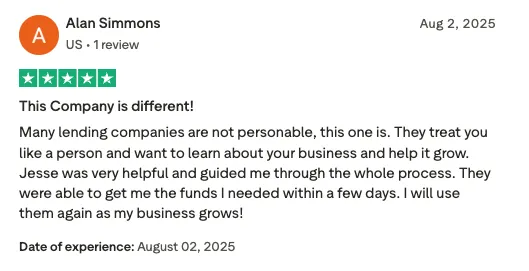 Their team was friendly and professional. My all-in rate was transparent as soon as I was approved and I was surprised that I didn't even need to have a personal guarantee. I got the loan completely on the merits of my business.